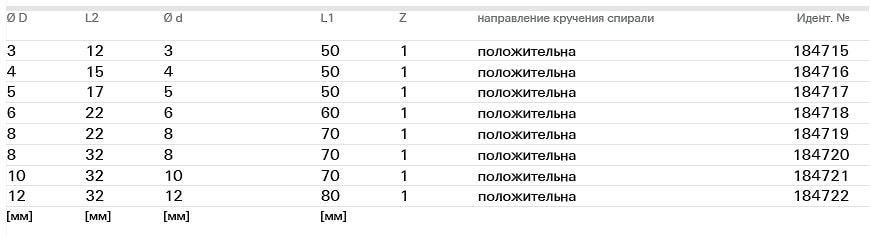 - оптимальный отвод стружки и отличное качество реза благодаря полированному каналу для отвода стружки и позитивному витку спирали.