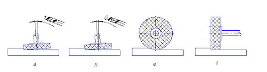Ножи в основном затачиваются по задней поверхности. В зависимости от положения заточного круга относительно поверхности шлифования различают 4 схемы заточки (рис 1)