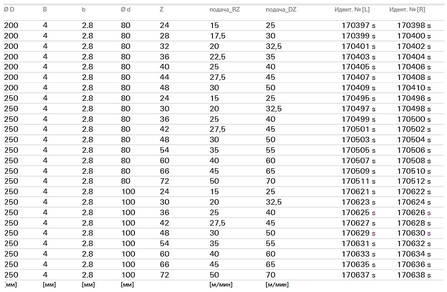 - форма зуба пилы: одностороннeкосой с фаской и осевым углом "ES-FA";