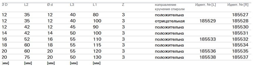 - отрицательное кручение спирали для заготовок с лицевой стороной сверху.