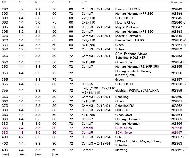 - для чистового реза в покрытых пленкой, пластиком или шпонированных древесно-стружечных материалах, отдельно или в пакете с высотой резания до 80 мм;