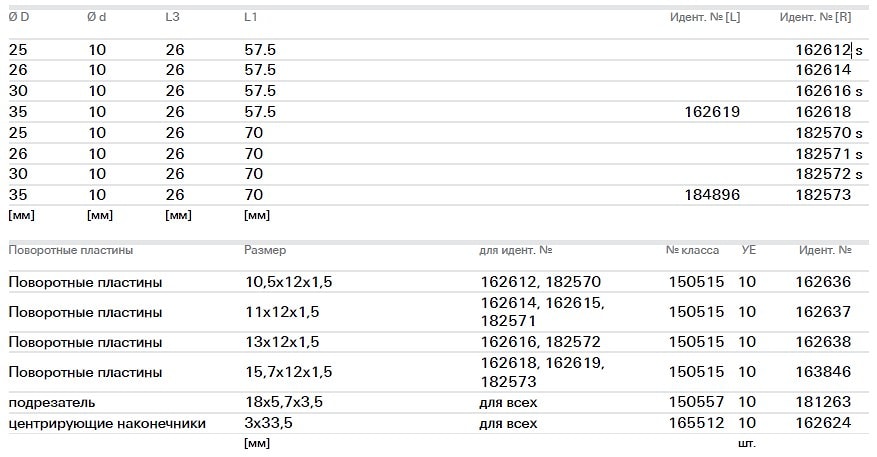 - 2 основных резца, 2 неперетачиваемых поворотных подрезателя и центрирующий палец;