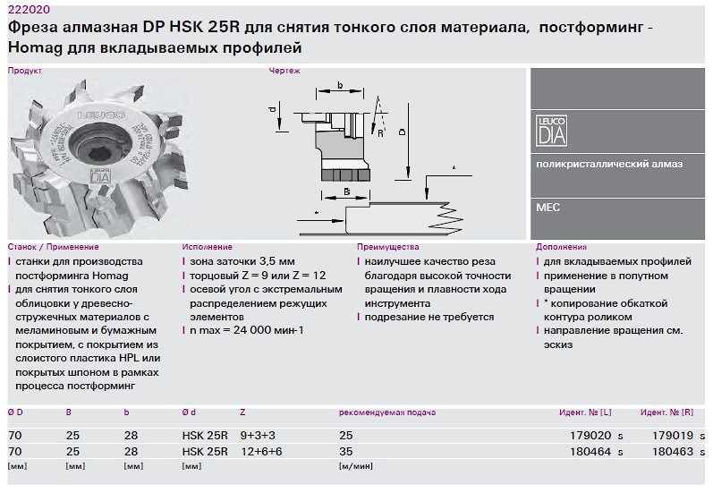 Фреза алмазная Leuco DP для снятия тонкого слоя материала постформинг - Homag