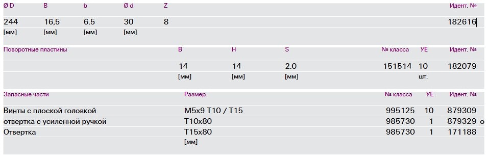- крепежный винт для поворотных ножей имеет различные сопряжения Torx с 2-х сторон. T15 спереди и T10 сзади;