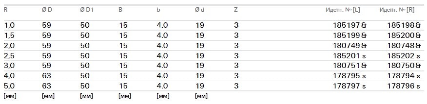- одинаковый базовый корпус ножевых головок для R 1,5 - 3 мм; R 4-5 мм;