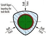 После снятия давления внутренние стенки хвостового зажима TRIBOS зажимают хвостовик инструмента по трем линиям с очень большим давлением: