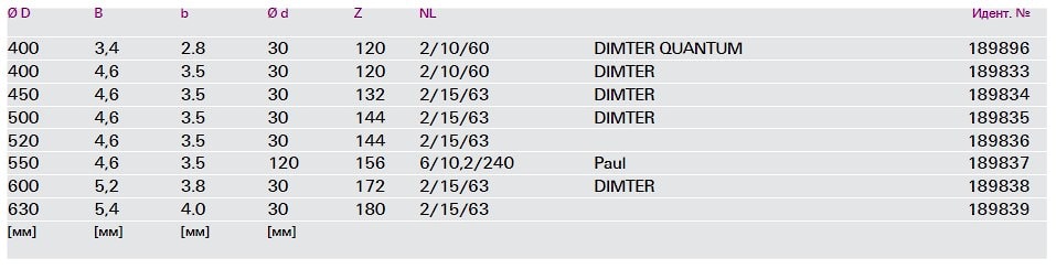 Компания Leuco поставляет данные пилы на линии оптимизации крупнейших европейских производителей, для качественного, бытрого и высокоточного поперечного реза в массивной древесине. Особенностью конструкции пилы является положительный передний угол, форма зуба - попеременнокосой зуб с фаской, режущий материал - HW HL Board 06, чрезвычайно высокий предел прочности на изгиб и твердость зубьев.