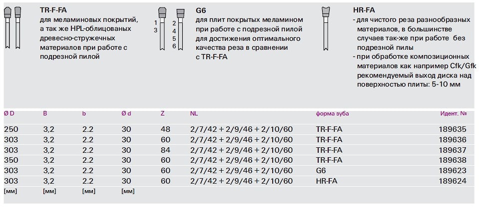 Область применения пил Leuco Diarex - столярные кругопильные станки, вертикальные станки для раскроя плит, для чистового реза в древесно-стружечных материалах с меламиновым, бумажным покрытием или покрытием из слоистого пластика HPL и композиционных материалов. Преимущества: