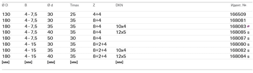 Применение в противовращении вдоль и поперек волокон, ширина реза 4 - 7,5 мм, состоит из 2 частей. Ширина реза 4 - 15 мм, состоит из 3 частей. Ширина реза регулируется промежуточными кольцами с шагом 0,1 мм. Отдельные ножевые головки и промежуточные кольца монтируются с защитой от прокручивания с помощью штифтов.