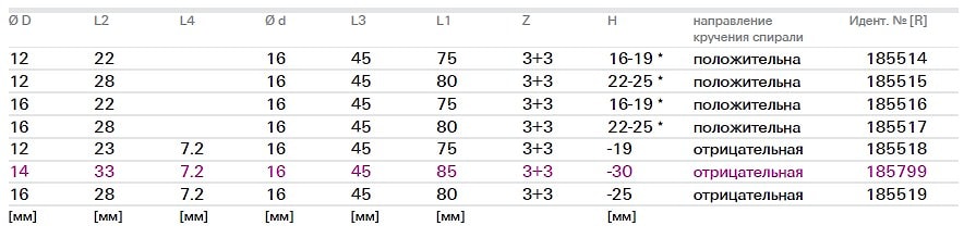 - позитивный виток спирали: оптимальный выброс стружки вверх в направлении аспирации;